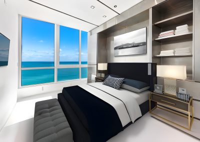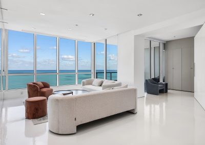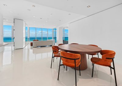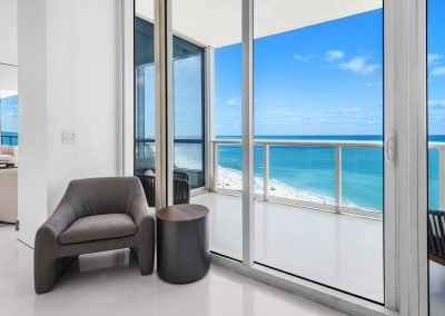Within the opulent Continuum Condominium, this distinctive 2-bedroom/2-bathroom residence is one-of-a-kind. Custom walls and cabinetry crafted from sophisticated white lacquer define the interior, creating an atmosphere of elegance. Adding a touch of versatility, the second bedroom features a retractable wall for seamlessly transforming the space to suit various needs, whether it’s creating an open, expansive layout or providing a private enclave. Nestled in the prestigious South of Fifth (SoFi) neighborhood, revel in the breathtaking panorama, with direct views of the ocean and expansive vistas of renowned South Beach from the unit’s private balcony.